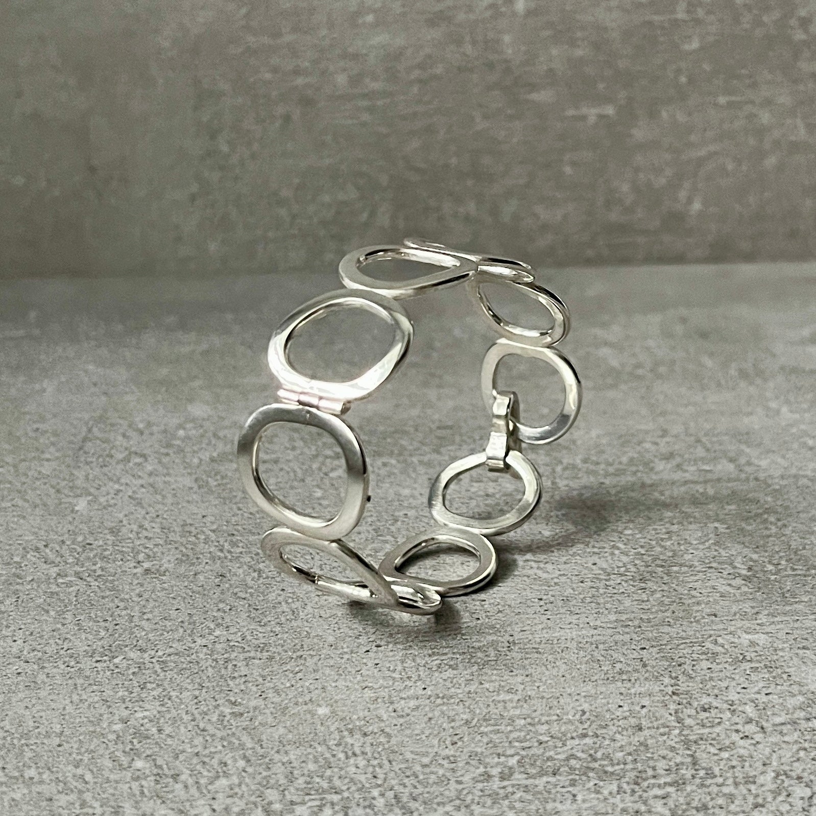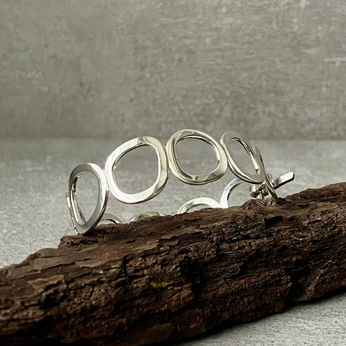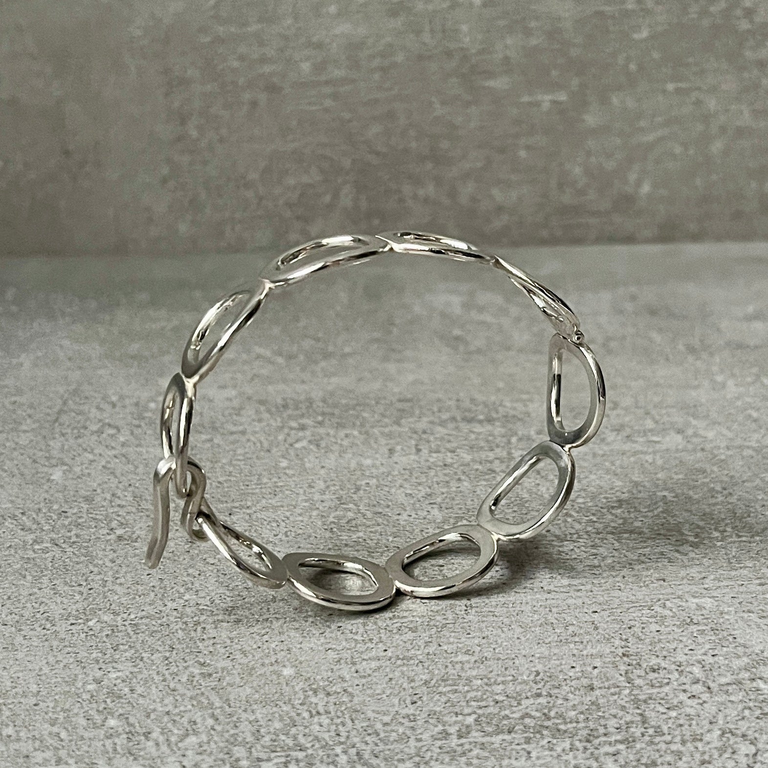 Elegant bracelet crafted by hand from solid silver (as shown) or 14 karat gold. Each link is individually formed and soldered, creating a refined yet organic rhythm around the wrist.